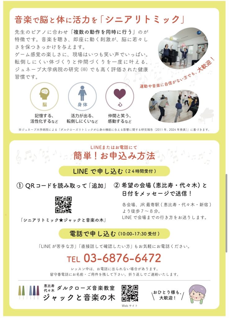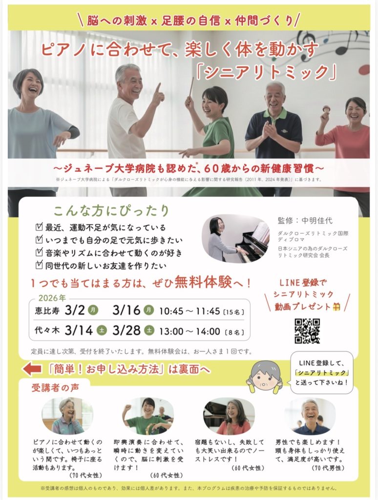【恵比寿・代々木】シニアリトミック無料体験会のお知らせ